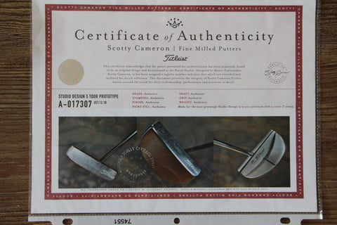 Experience precision engineering with the Scotty Cameron Studio Design 5 Tour Prototype Putter. This exclusive prototype features Scotty's signature milling craftsmanship and refined Studio Design geometry, delivering exceptional feel and control on the greens. The carefully balanced head design promotes smooth, consistent strokes while the premium construction ensures durability through countless rounds. A collector's piece for serious golfers who demand the finest in putter performance and design.